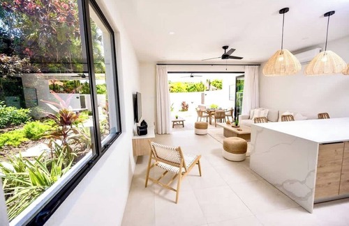 a luxurious two-bedroom, two-bathroom townhouse just steps away from the beach