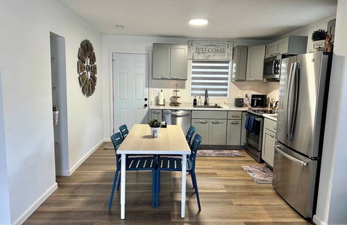 Welcome to our cozy, modern, and fully remodeled 2BR/1BA bungalow in the heart of Zephyrhills! Enjoy a bright mid-century retreat with plenty of space to relax, work, or play. Centrally located near parks, restaurants, bars, and healthcare facilities. Features include a full kitchen, dining room, comfy living room, washer/dryer, fast Wi-Fi, Netflix, Keurig with coffee pods, pots, pans, dishes, and more. perfect for anyone!