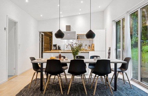 Single-family house, built in 2018. 500 m from the sea. Private: natural state property 788 m2. Outdoor shower, terrace (75 m2), barbecue. In the house: sauna, washing machine. Parking at the house. Grocery 2.7 km. Golf course 4 km. The owner does not accept any youth groups.